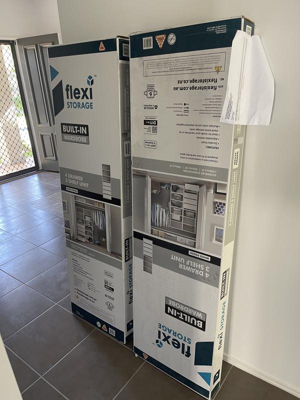 - flexi storage white 3 shelf 4 drawer built in wardrobe unit